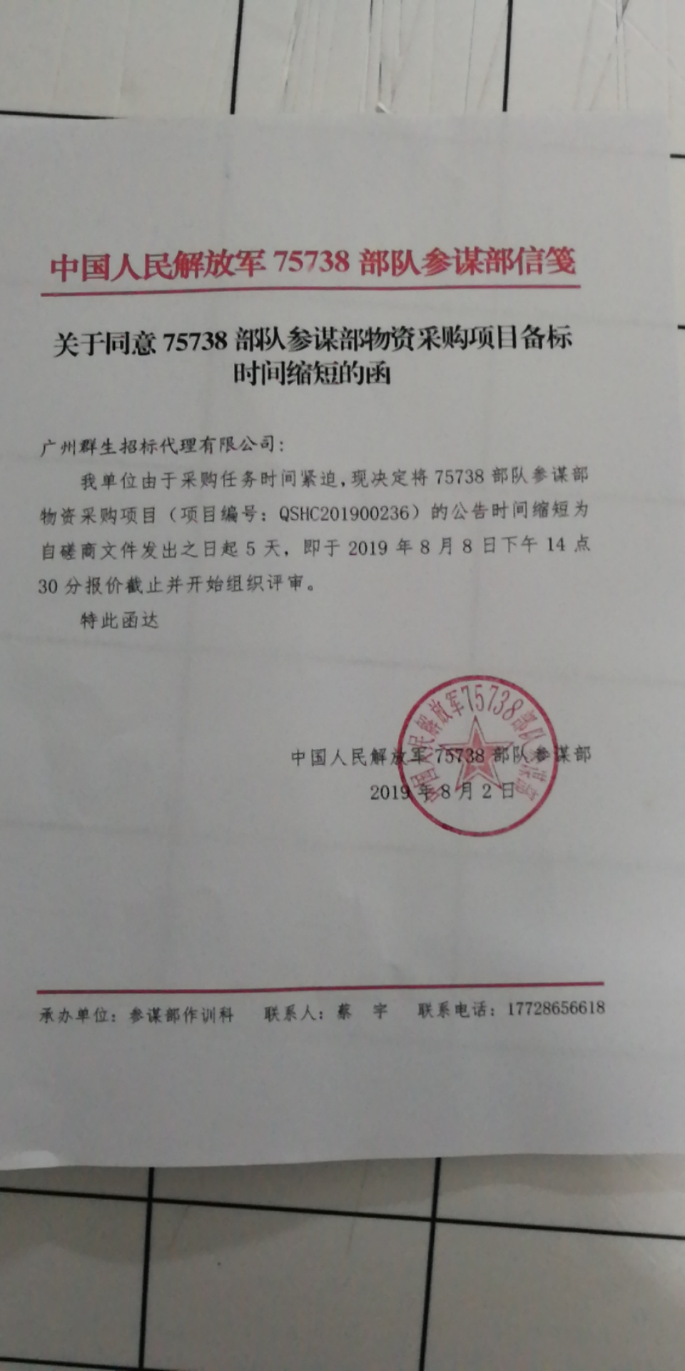 75738部隊(duì)參謀部物資采購(gòu)項(xiàng)目競(jìng)爭(zhēng)性磋商采購(gòu)公告